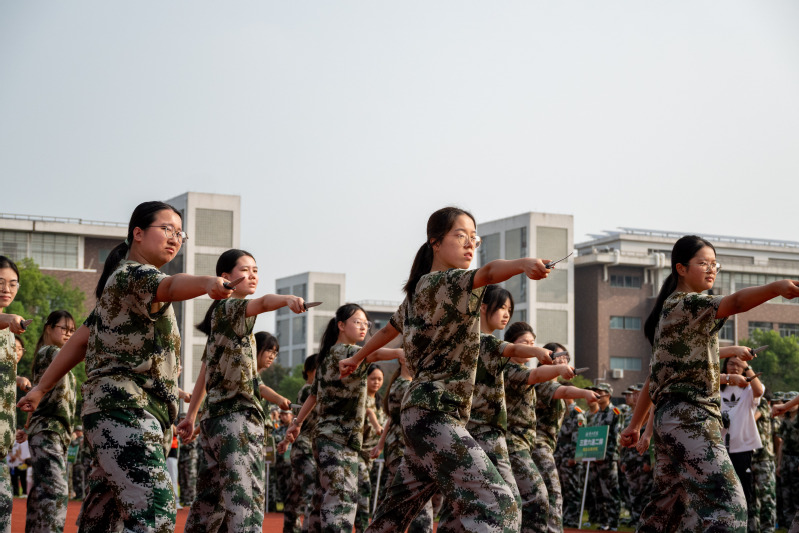 邓崴下达分列式汇演号令。各方阵步伐铿锵,口号嘹亮,以整齐划一的队列走过主席台,接受检阅。军事科目汇报精彩纷呈,擒敌拳方阵弓步冲拳,迅猛刚劲,踏地有声;刺杀操方阵目光如炬,突刺凌厉,动作一气呵成;匕首操方阵手持短刃,灵动刚劲,抬手、转身间,尽是巾帼不让须眉的飒爽。